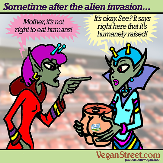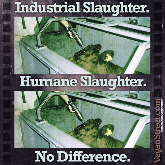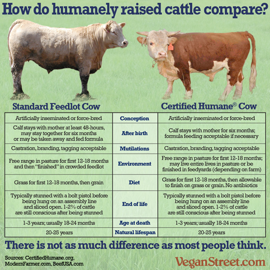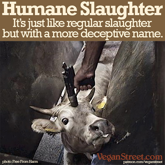 Killing animals for food is far worse than making them suffer. Of course, it is admirable that people care so deeply about these animals that they take deliberate steps to reduce their suffering (e.g. by purchasing "free-range" eggs or "suffering free" meat). However, because they choose not to acknowledge the right of those same animals to live out their natural lives, and because slaughtering them is a much greater violation than mistreatment, people who eat 'humane' meat are laboring under an irreconcilable contradiction.